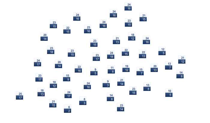 | 2 | 4 | 9 | 14 | 18 | 21 | 23 | 22 | 19 | 13 | 7 | 2 |